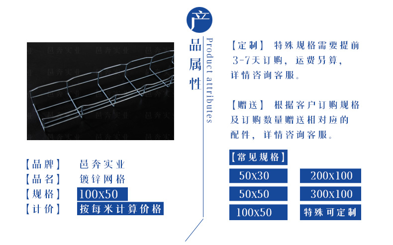 100*50mm电镀锌网格桥架