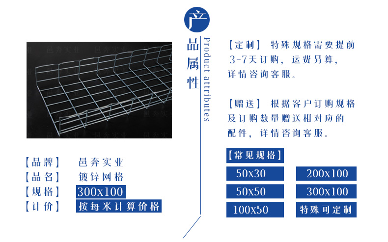 网格桥架是一种开放式金属网格桥架,式传统电缆桥架的延伸产品,目前广泛应用于电力、通信电缆的走线布线。其所使用的原材料与一般电缆桥架有所区别,为优质钢丝,在经过焊接后成型,表面经过不同的工艺处理方式。有着其他类型的桥架所无法比拟的特点。如灵活简便,网格桥架产品无需订制任何弯头、三通等部件,均可根据施工实际情况做成各种形式。这个特点对于设计人员以及安装人员来说都非常简便,可大幅度缩短安装时间。