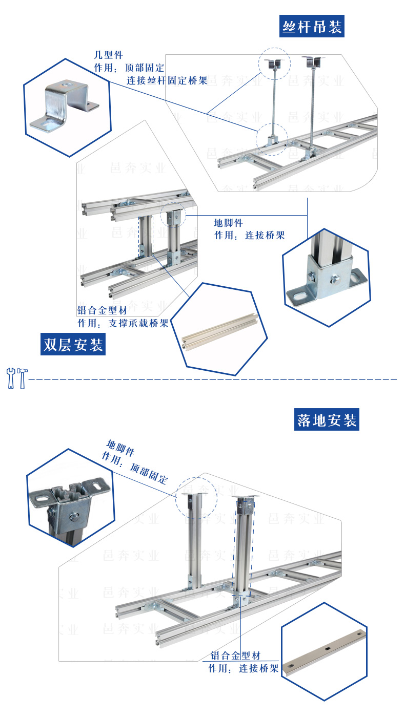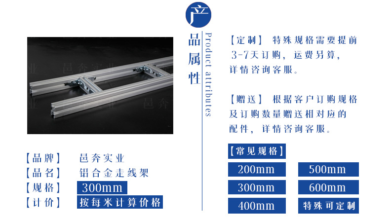 (1)铝合金走线架宽度可调,单层,双层,多层,垂直走线,水平走线,任意组合;