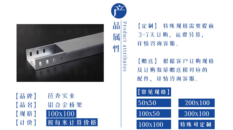 四、铝合金桥架:其产品是用阳极氧化铝板直接加工而成。具有材质庆耐腐蚀效果好。