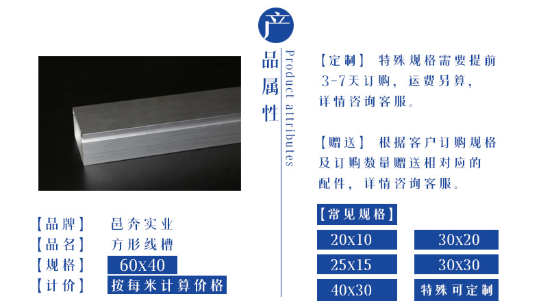 外盖式铝合金方形线槽60*40