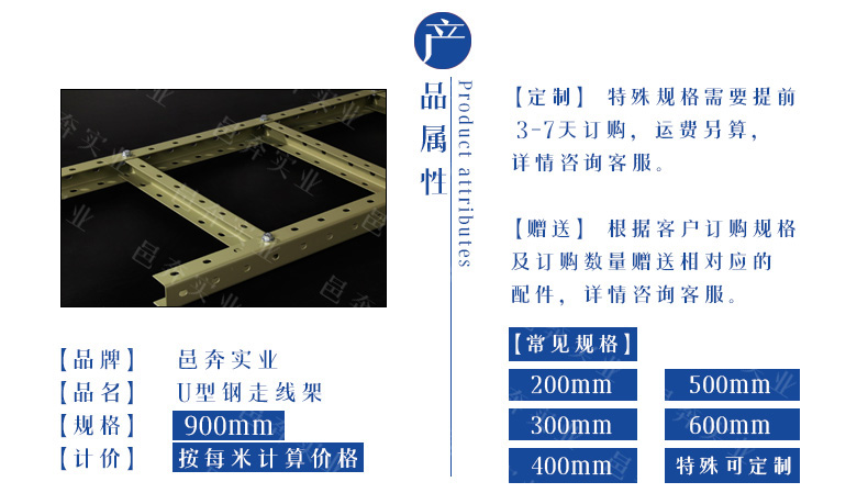 多孔U型钢走线架是本厂针对电信、移动、联通、网通、铁通等电信运营商机房、机站开发的专用产品。它既有布线管理作用,又有支撑全部缆线重量的功能。是光缆、五类线、电线、电缆、管缆架设达到标准化的必要工程用具。本产品符合信息产业部要求,为全开放式裸架。主材选用优质钢板表面喷塑或热镀锌(室外用),具有承重量大,外观大方,耐腐蚀等特点。