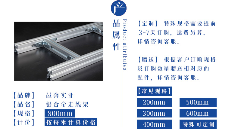 (1)铝合金走线架宽度可调,单层,双层,多层,垂直走线,水平走线,任意组合;