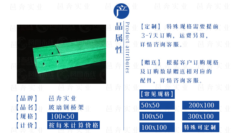 玻璃纤维增强塑料和阻燃剂及其它材料组成,通过复合模压料加夹不锈钢屏蔽网压制而成。由于其所选材料具有较低的导热系数及阻燃剂的加入使产品不仅具有耐火隔热性、自熄性,而且具有很高的耐腐蚀性,同时还具有结构轻、耐老化、安全可靠等优点,可方便地与金属桥架配套使用,在化工、冶金、石油等强腐蚀环境得到使用。