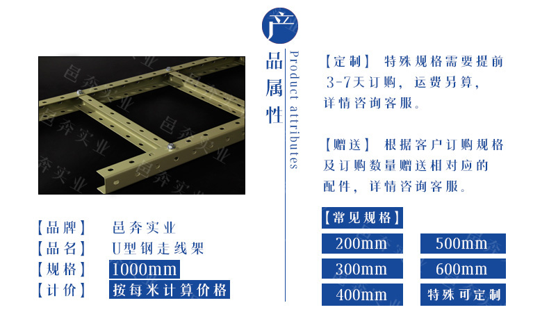 产品导航:槽式电缆桥架  梯式电缆桥架  托盘式电缆桥架  铝合金走线架  U型钢走线架  光纤槽道  线槽  配件  更多  水沟槽  彩钢桥架  抗震支架